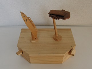 ![]() 「アカエイ」:ハンドルを回すと胸びれが波打つように動きます。 「タチウオ」:レバーをトントンと押すと、背びれが波打つように動きます。 なぜ? |
