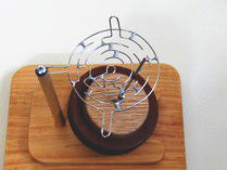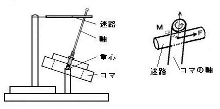 | コマを回し、軸を迷路に接触させると、迷路をなぞって進み、脱出します。 なぜ? どんなしくみでこまが迷路抜け出すのだろう? |